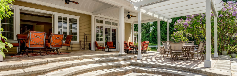 Another way to incorporate an indoor-outdoor living area is by covering your patio. Indoor-outdoor spaces can also mean having interior features in an exterior setting, such as fire pits, kitchens, and comfortable furniture so covering your patio can help you enjoy this area even on rainy or very hot summer days.