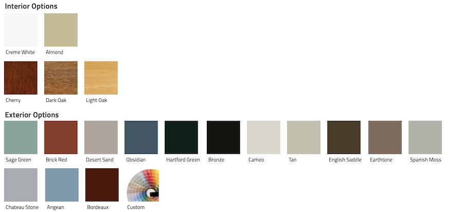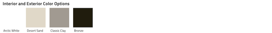 Solar Bear color options include Arctic White, Desert Sand, Classic Clay, and Bronze. Dark windows have been very popular lately so the Bronze option in Solar Bear windows is a really nice feature, unfortunately the Bronze exterior is only available with a White interior.