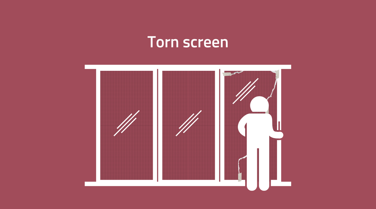 Your door's screen can get torn by wear and tear or because of something like a rock hitting it. You may also turn it the wrong way when opening or closing the door and cause it to break. The torn screen will prevent you from opening or closing your patio door, which can be frustrating and dangerous if there's an emergency outside.