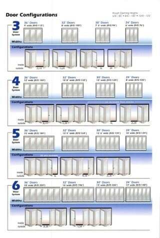 The following pricing reflects standard 36" wide door panels with 1-lite Low-E insulated glass units. The main heading above each table will list the overall width of the entire door unit and the number of panels in the door unit.