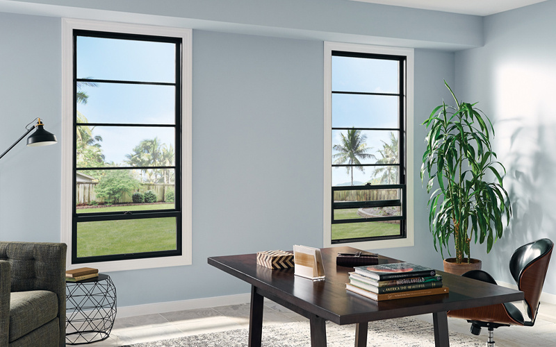 Fiberglass Ultra windows will either have powder-coated or wet-coated applications while vinyl Trinsic window colors are applied with a special coating technology that preserves the exterior finish. When comparing Trinsic and Ultra windows you’ll notice that Trinsic windows are available in more color options but you’ll only be able to get a dark interior and dark exterior, similar to the popular black-black, with the Ultra series.