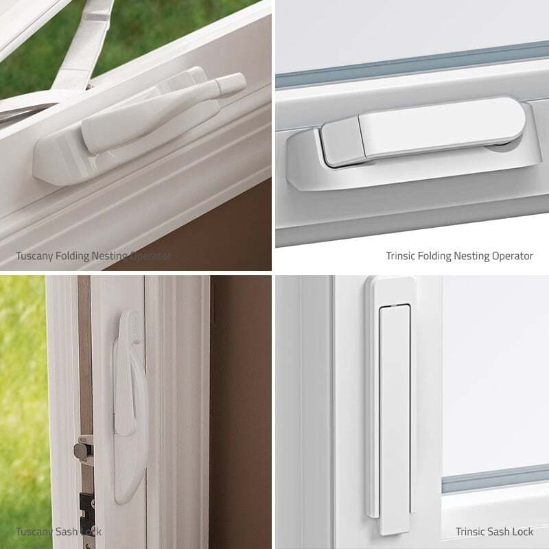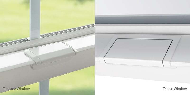 SmartTouch window locks have a sleek, low-profile design and while they do look different for Tuscany and Trinsic series windows they operate the same way - lift and lower the latch, no pinching, squeezing, or twisting necessary.