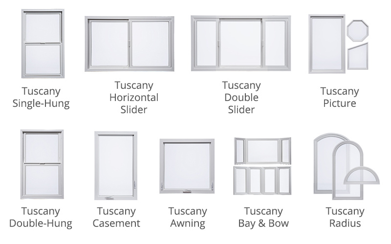 While Milgard offers several different series of window styles, Tuscany windows are unique because they are a premium vinyl window with nine different window style options.