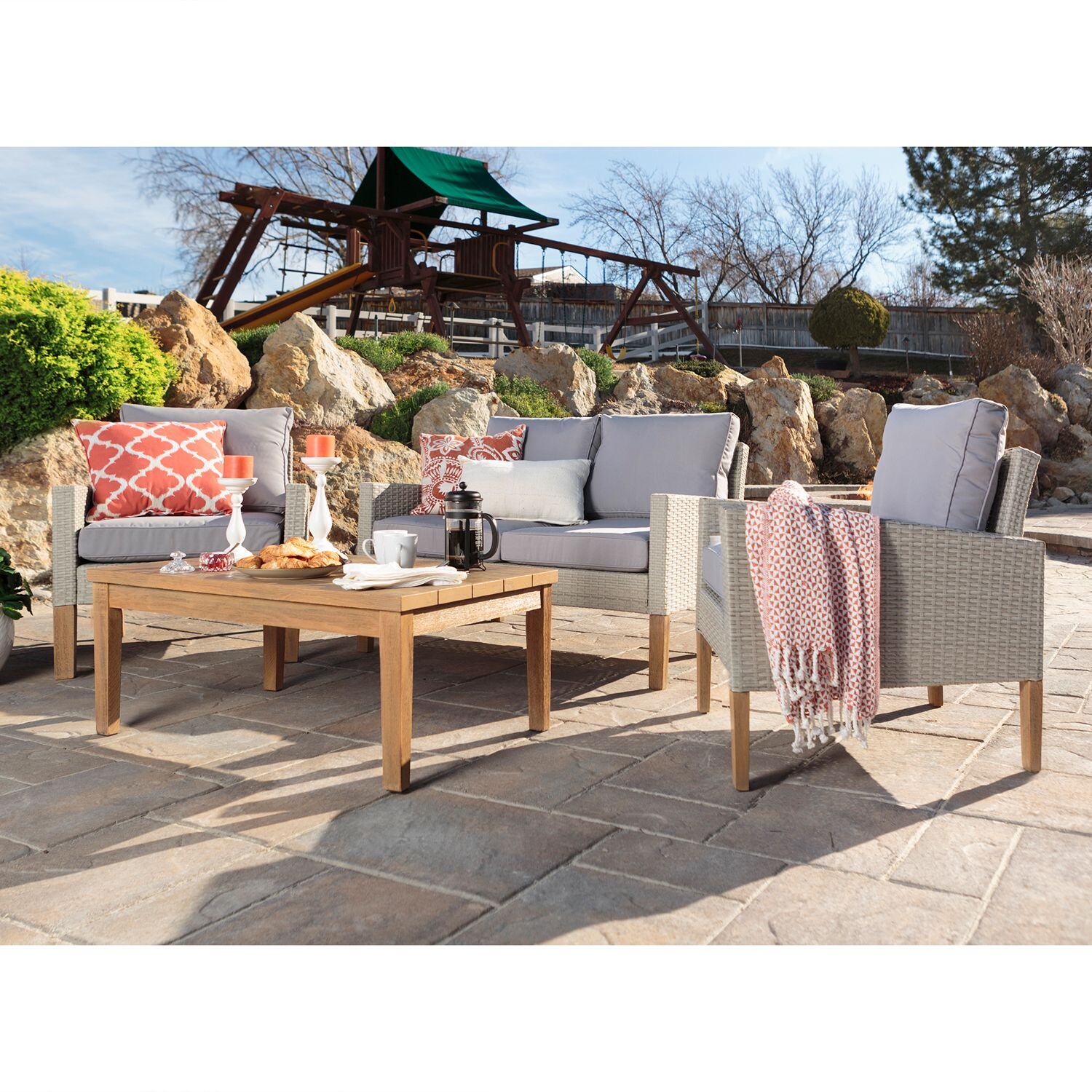 If you like a more natural look but still want something modern and elegant aim for something like this patio set from Pier 1 Imports. This is actually a 4-piece set with two benches, a slipper chair, and table that can be easily rearranged for more separate seating, a long bench, an L-seat, or a U-seat.