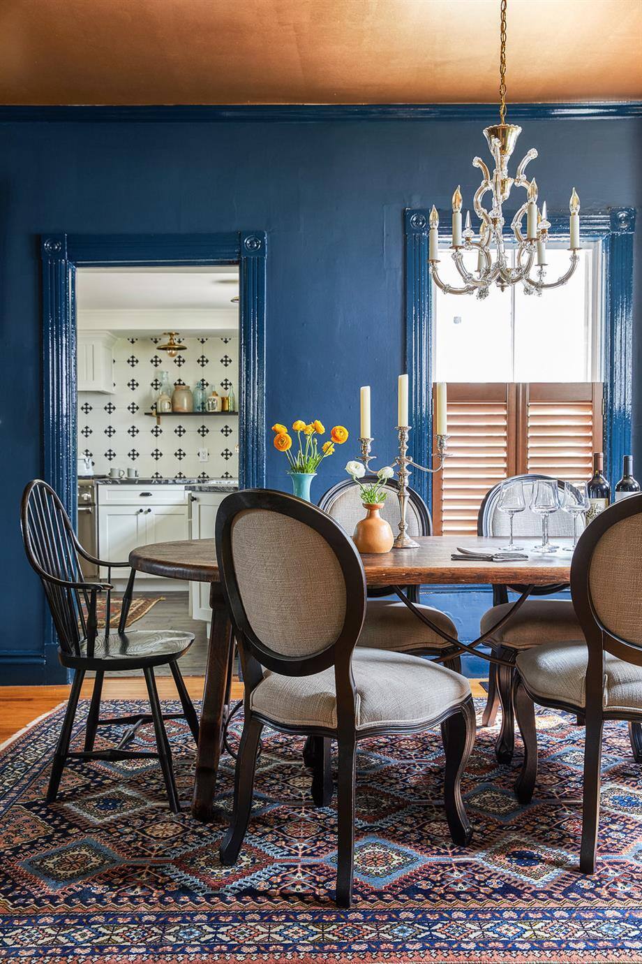 I’ve seen this color used a handful of times in the design world, and I am swooning. I especially love the idea of pairing it with a pristine, white kitchen. Carefully consider the room you choose. As you can see below, the color looks darker with less light. It's a great bold color that still acts as a somewhat neutral.