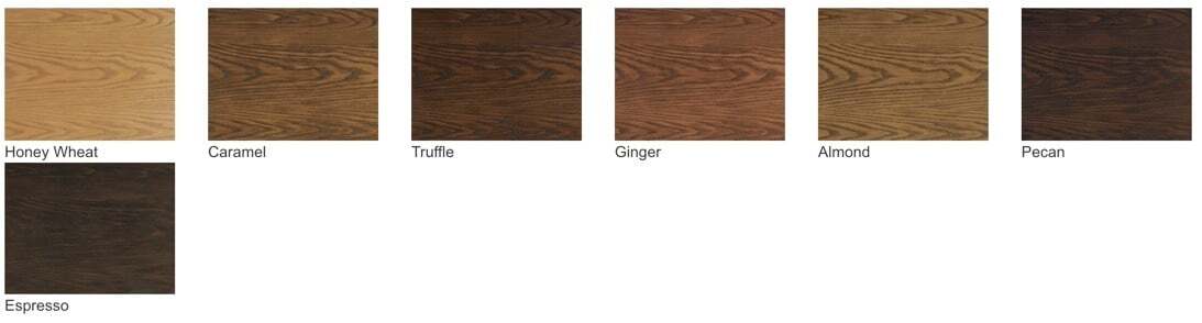 Stain options for Signet Oak, Knotty Alder, and Fir
