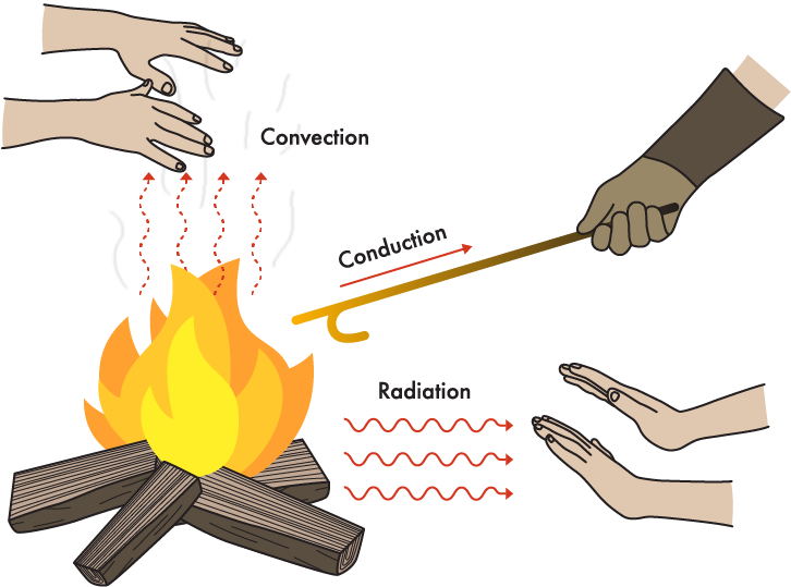 Conduction is the process by which heat transmits through a window from the hotter side to the cooler side. Radiation is the transmission or emission of energy waves through space or an object. Convection is the transfer of heat by movement in air or water. Hot air rises and cool air falls.