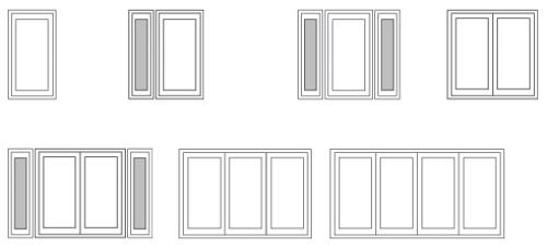 - Four-panel configurations are available, with two operable panels sliding open from the center.