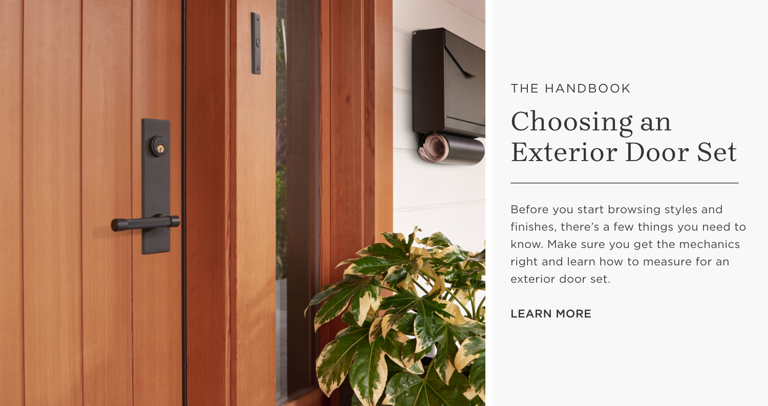 Schoolhouse↗ is a great all-in-one place to shop for door hardware, and its easy-to-use website is appealing for its cart-friendly design. They carry large or small backplates, deadbolts, entrance handsets, door hinges, accessories, and more, filtered by price, product, color, and size. Their offerings come in black, brass, bronze, and satin nickel and range up to $500, and styles are simple and fluid, easy to install, and have a charming next-door look in any interior or exterior home.