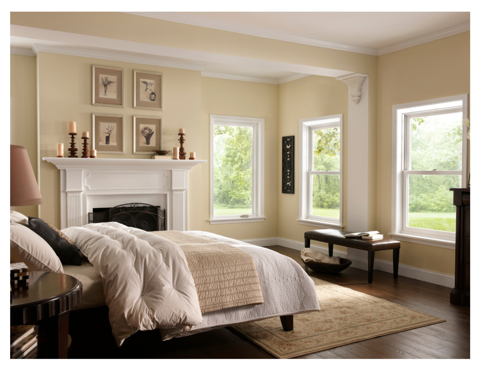 Combining windows on adjacent walls can create a stunning scenic view and fill your bedroom with natural light. Casement or sliding windows work well for corner installations.