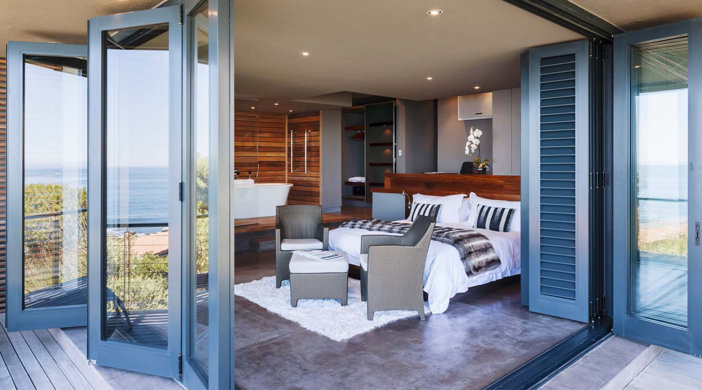Bifold or folding doors create a bold and expansive opening to the outdoors.
