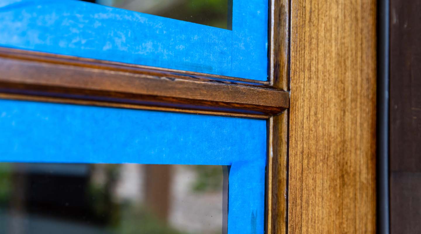The best ways to prevent accidentally staining the glass on your windows is to use painter's tape around the glass by the frame.