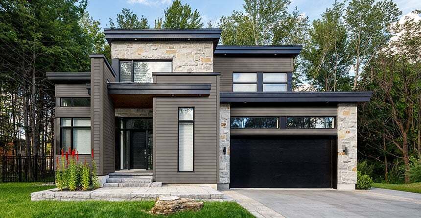 - Unobstructed views and asymmetrical placement are signature features in modern design which is why casement and picture windows are popular choices for this style house. If your Industrial Modern has dark colors look for window vendors that provide dark exterior colors as options.