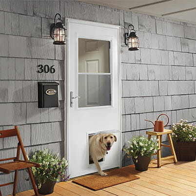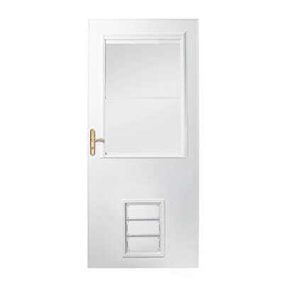 The 10 Series 1/2 Light Panel Ventilating Storm Door with Pet Door combines our best-selling 1/2 light storm door with a convenient pet entry system allowing your pet freedom to go in and out as they choose.