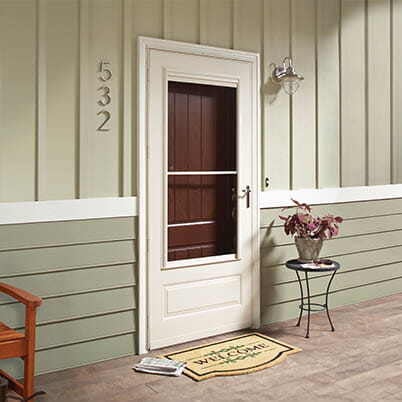 The 8 Series ¾ Light Panel Ventilating Storm Door is available with convenient options and features a classic ¾ light design. Adjust from weather protection to ventilation without having to remove and store the glass.