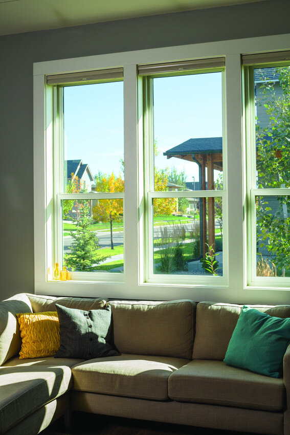 These windows have an upper fixed sash and a lower operable sash that allow for ventilation. Andersen Fibrex® windows are made from a sustainable composite material.