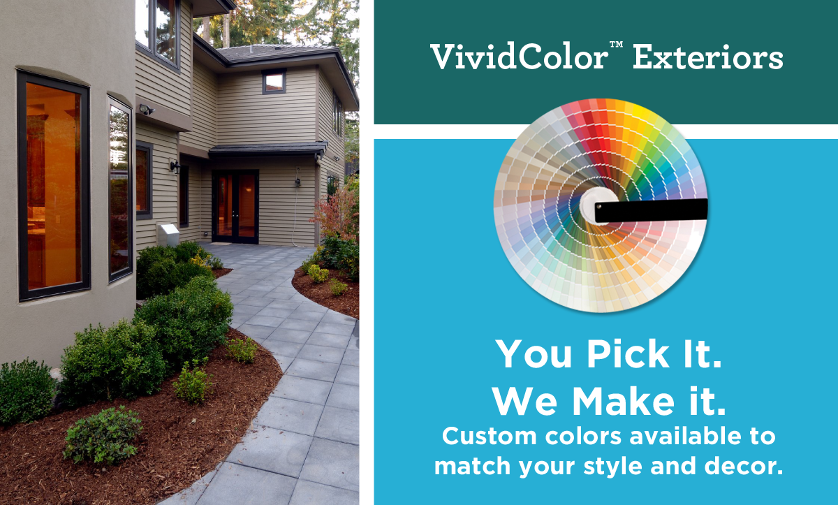 The Vivid Color System provides high-quality finishes while limiting the environmental impact. Vivid Color is one of the first color coating systems that offered water-based, high-performance coatings in the industry. This time-tested environmentally friendly option will enhance the curb appeal of your home.
