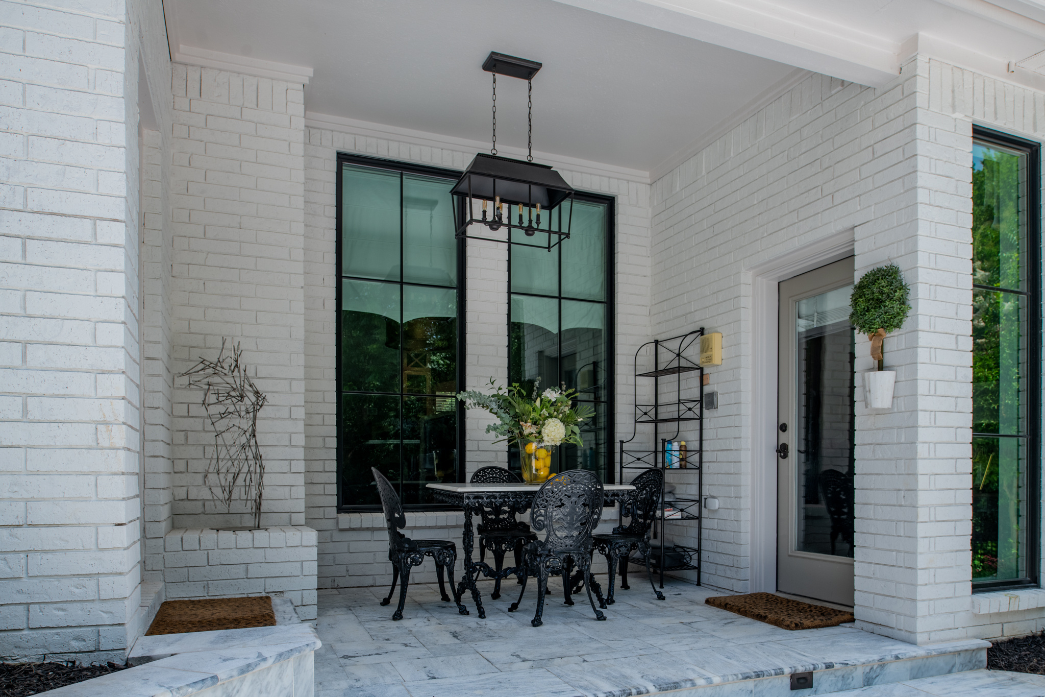Can you believe it? Just a few years ago this home had red brick, bland white aluminum windows, and green vinyl shutters. But hold on to your hat folks! Our client decided it was time to shake things up! Cue the paint rollers, modern windows, cozy patio, and snazzy new doors.