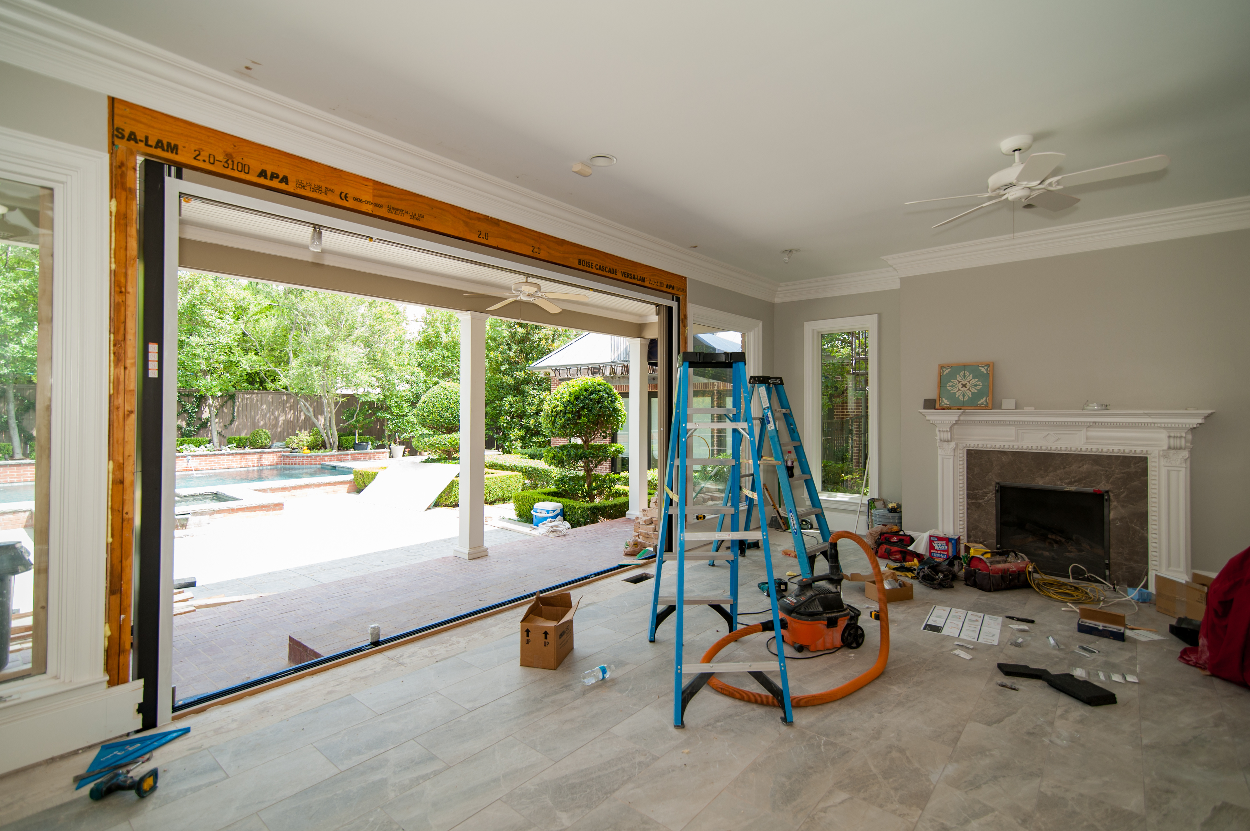 Our client was dreaming of easier access to the courtyard/pool area. Our recommendation was a 14 feet wide x 9 feet tall four-panel outswing folding door.