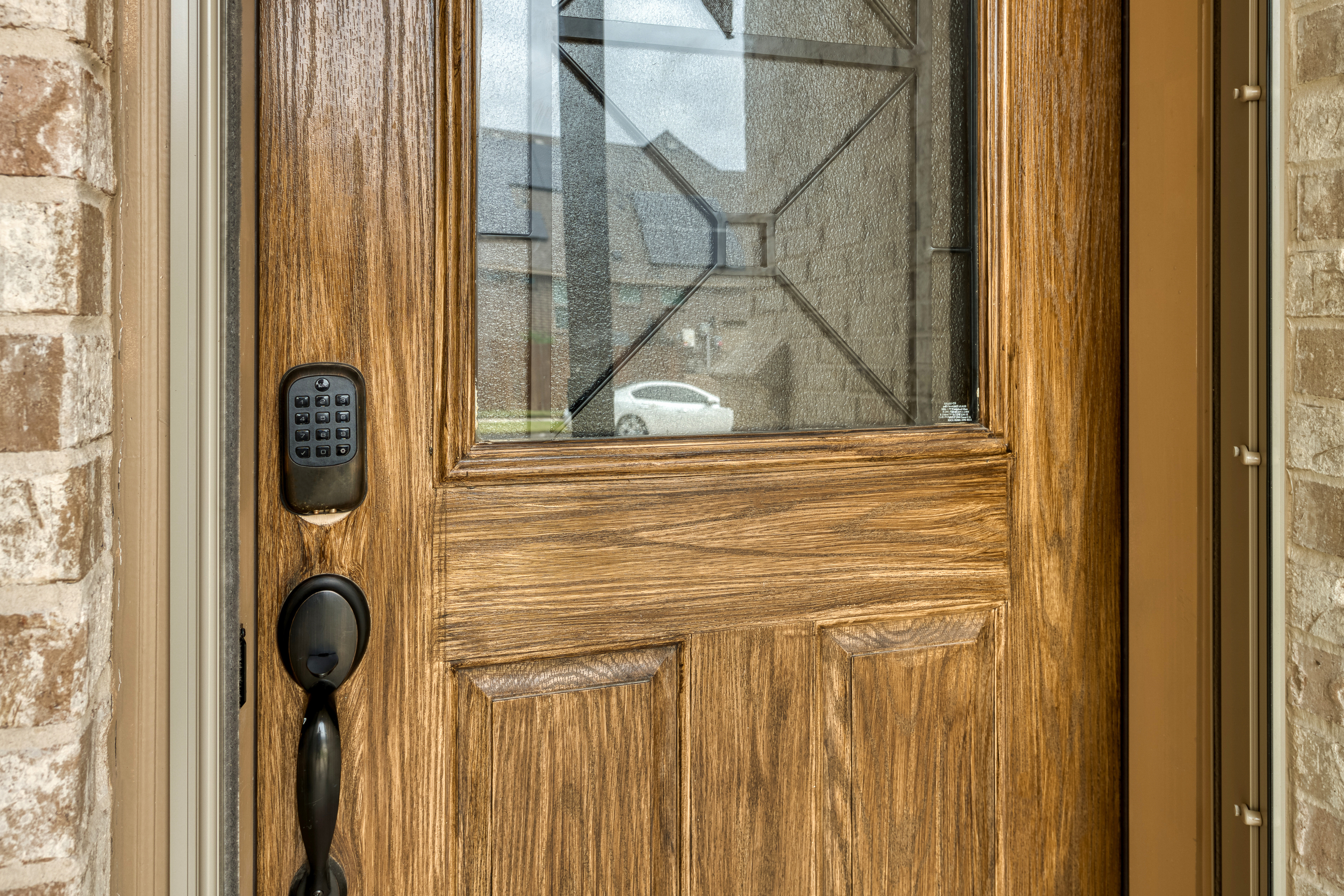 We recently enhanced this beautiful Waxahachie home with new doors and ProVia’s high-quality storm doors. The back patio now features a ProVia storm door equipped with a convenient built-in pet door, providing easy access for furry family members. At the front, we installed a stylish new door complete with a state-of-the-art smart lock for added security and convenience.